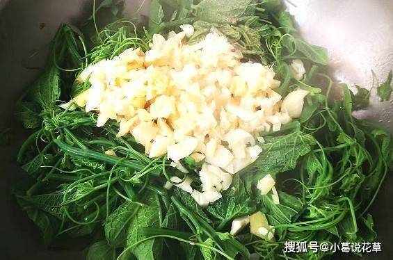 炒至連體南瓜被壓碎,撒上調好的鹽和雞汁,炒至材料變甜,裝盤。美味的佛手瓜尖就做好瞭,你也可以試試。