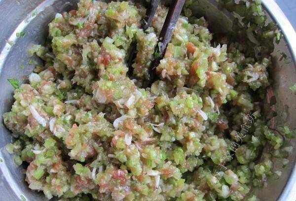 面粉800克,植物油適量,肉末500克,精鹽適量,芹菜適量,醬油適量,生抽適量,香油1湯匙,適量。蘸醬