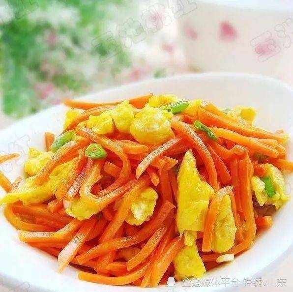 食材:胡蘿卜 2根、雞蛋 3個、小蔥 2根、白糖 1調味匙、鹽 適量
