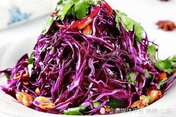 紫甘藍、鹽、白醋、白糖、香油具體做法: