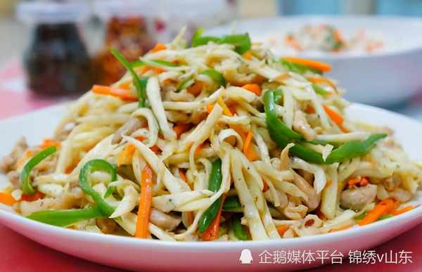 4)加入茭白絲煸炒,加入適量鹽、醬油、料酒調味。