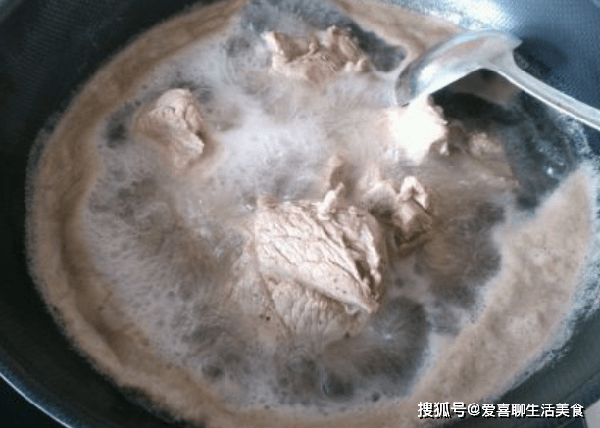 2,把洗凈的肉骨頭放入鍋中,加入清水、蔥結、薑片和料酒,大火燒開後,撇去浮沫。然後轉小火燜煮至軟爛。