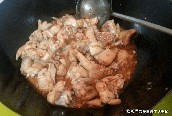 2,鍋中加入食用油,然後放入雞塊,炒至變色,加入蔥花,薑片和料酒爆香,再加入生抽老抽上色,接著加入開水沒過雞塊,然後加入春筍。