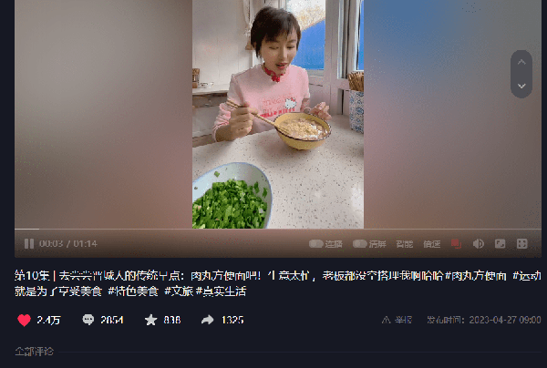與此同時,歐陽夏丹還發佈瞭一則時長達01:14秒的短視頻,該視頻系歐陽夏丹在山西省吃方便面的畫面,下面就讓我們一起通過鏡頭來看看此次歐陽夏丹這次進食都有哪些值得關註的亮點之處: