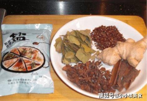 2、鍋內加入足量的水,加入現成的鹽、胡椒粉、八角、桂皮和薑。用大火煮至鹽完全溶解。