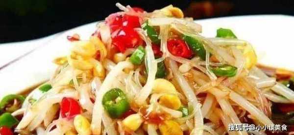 1.將粉絲搟成10厘米長的段,用開水煮熟,撈出放涼;將豆芽洗凈放入沸水中煮熟,撈出晾涼;將紅辣椒切成圓形;