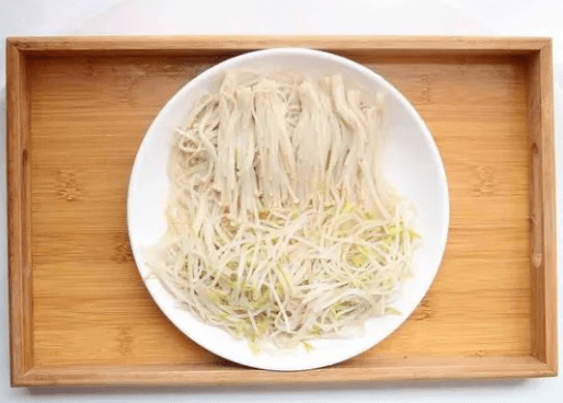 3.起鍋熱水,金針菇與豆芽分開燙熟撈起備用。