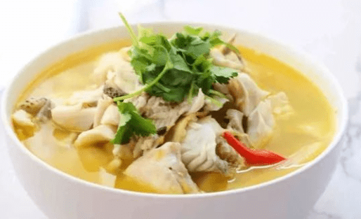 11.將煮好的百香果酸湯魚裝至碗中,撒上香菜。