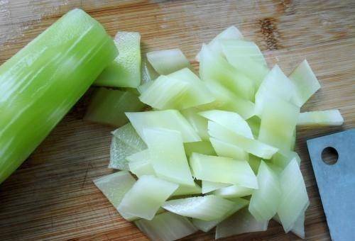1、首先將生菜洗凈,去皮,用刀切成片。然後將紅辣椒洗凈去辣椒籽切塊待用。將兩者一起浸泡在溫水中。