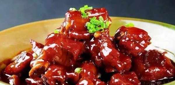 將枸杞子洗凈,水煮取濃汁30克,排骨洗凈控水,切成7厘米寬扇面塊,再用刀背拍排骨的兩面,使肉松軟。拍好後用刀將排骨輕輕的拍一下,在排骨的下端用刀切一小口,以防油炸時排骨卷縮。將炸好的排骨放入搪瓷容器中,加入料酒、醬油、蔥段(用刀拍過)、薑末醃30分鐘,取出控去醬油汁待用。鍋上火燒熱,倒入植物油,燒至七成熱時,放入排骨,用手勺推散,並不停地翻動,約炸2分鐘,呈金黃色,手感肉質發硬即好,撈出,控幹油,裝盤。另取一鍋上火,加入香油燒熱,加白糖、番茄醬、枸杞濃縮汁及清湯少許,燒開後用濕淀粉勾流水芡,澆入裝盤的排骨上即成。