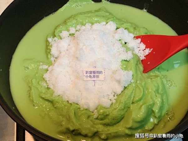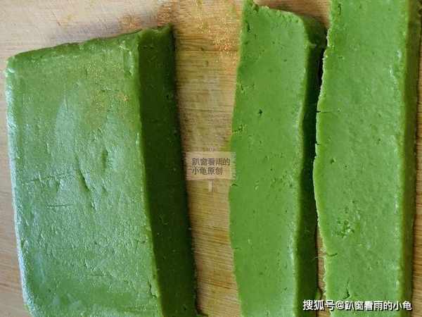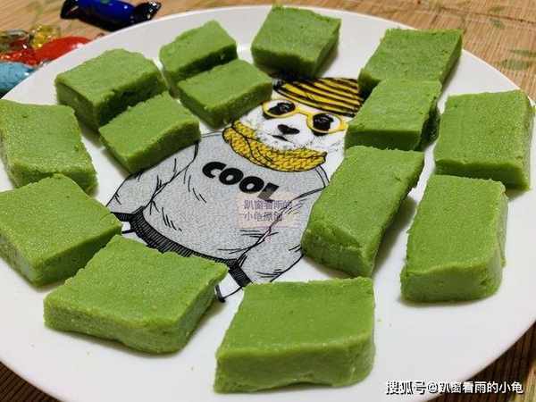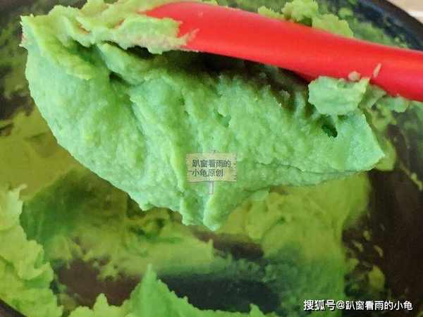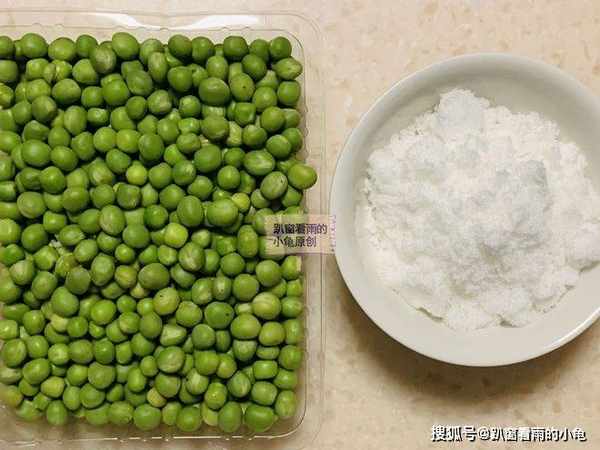 2、為瞭使做出來的豌豆糕顏色還是碧綠的,在煮制豌豆的時候可以少加些食用油、並且煮熟之後迅速過涼水,都可以減少青豌豆的表面氧化過程而使顏色變化太大。