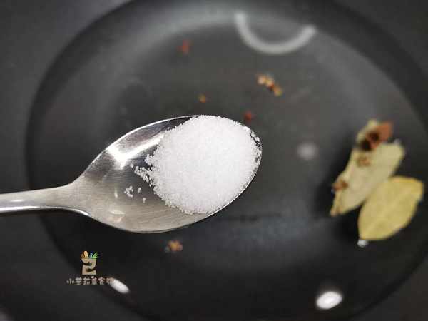 3、在鍋裡放花椒八角香葉,再放鹽,然後開火將水燒開,繼續煮5分鐘,讓香料的味道滲入水中。