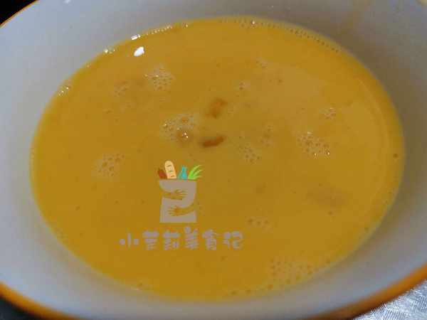 5、接著我們準備一顆雞蛋打入碗中,攪散蛋液之後,先在鍋內淋入一些水淀粉,調到小火讓湯汁濃稠些,淋入蛋液,繼續煮出蛋花,鮮美的西紅柿湯就完成瞭。