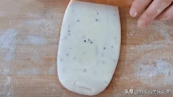 11.搟薄的部分對折過來。把它折成一個小生坯。