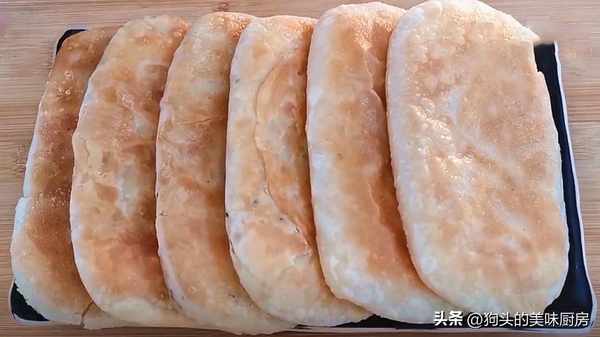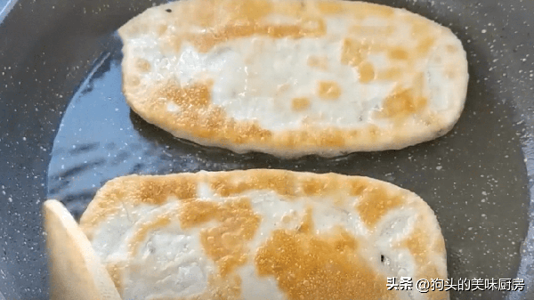 15.反復翻面多次,一直烙到表面微微鼓起,顏色變得金黃就可以出鍋瞭。