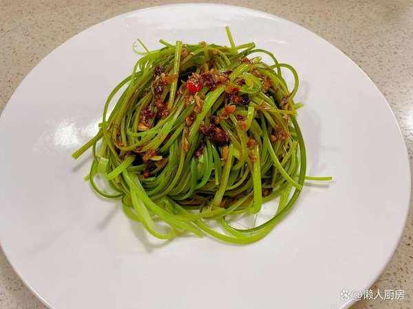 4、將料汁倒在蒜苔絲上,就可以吃瞭,蒜苔可以準備多一點,否則不夠吃。