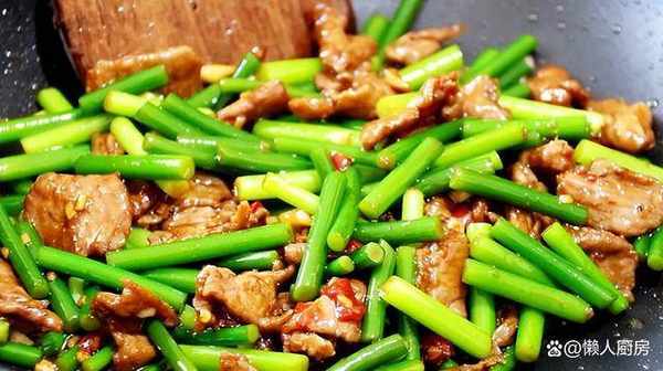 做法:1、蒜苔去掉尾部,切成小段;五花肉切成薄片;大蒜切片;幹辣椒切小段。