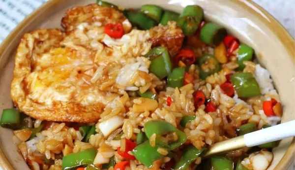 2:鍋中油放入蔥蒜煸香,倒入醬汁煮至濃稠倒入青椒拌勻,再跟米飯拌勻即可