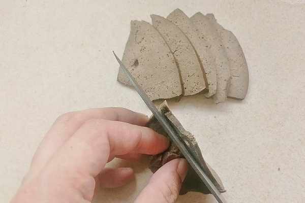 第六步,吃之前取出豬肝,用刀將其均勻地切成薄片,擺在盤子裡端上桌就可以食用瞭。