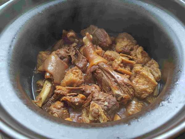 3、把鴨肉和料汁一起倒入砂鍋中,倒入熱水,中火燉40分鐘,加入油豆腐繼續燉20分鐘,最後加入鹽調味即可。