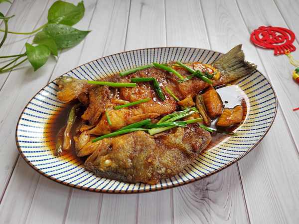 3、起鍋燒油,放入鱸魚煎至兩面金黃,放入蔥白和薑片煸香,淋入一圈料酒去腥,再倒入料汁燒至入味,最後放入蔥葉增香即可。
