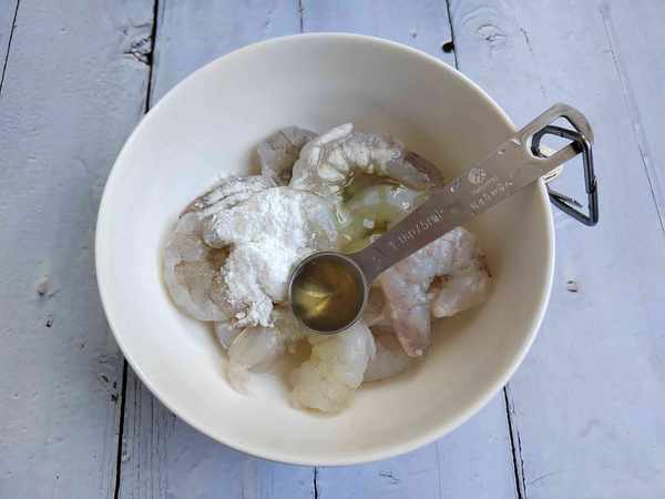 1、蝦仁清洗幹凈,控幹水分,加入料酒、生粉和蛋清,抓拌均勻,醃制片刻。