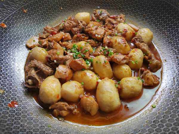 食材:小芋頭、雞肉、蔥薑、油鹽、生抽、蠔油、料酒、紅燒醬油、八角、桂皮、香葉、冰糖、麻辣火鍋底料。