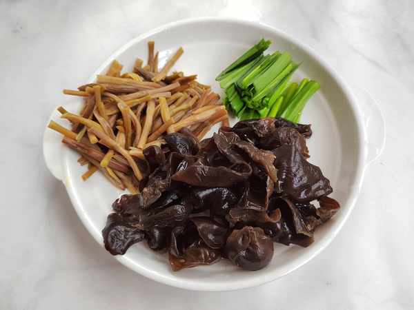 1、把黃花菜和木耳分別泡發,清洗幹凈。