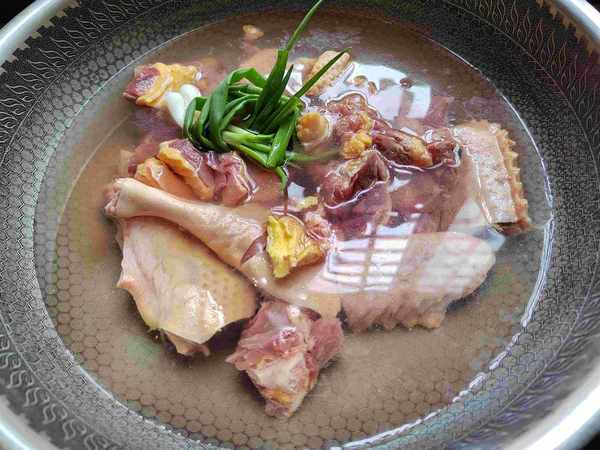 1、鴨肉處理幹凈,冷水下鍋,加入蔥薑和料酒,大火煮10分鐘,把浮沫撇掉,撈起沖洗。