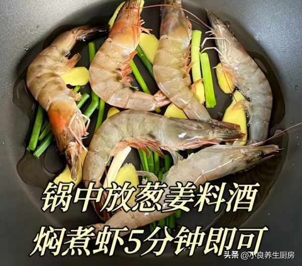 第二步:另外起鍋放入大蝦,丟入一些薑片和蔥段,加上適量冷水,加上少許料酒,將大蝦燜5分鐘,能夠去掉腥味,剝掉蝦殼和蝦頭,蝦仁放在碗中,備用。