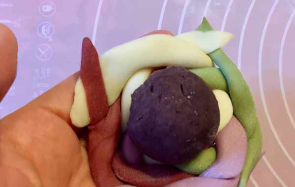 [菜名]:多彩繡球豆沙包