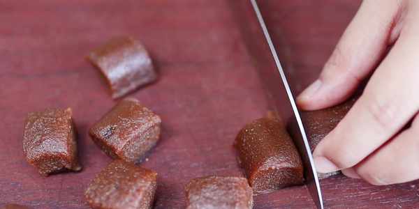 薑汁軟糖食材:生薑汁150克、糯米粉150克、紅糖150克、清水20克