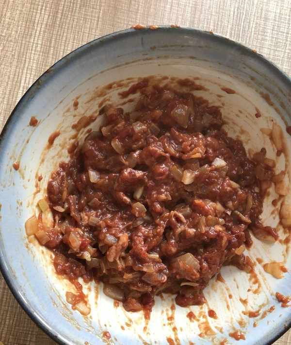 2、牛肉餡大傢也可以換成是雞肉餡或者是豬肉餡,覺得有腥味的話可以在餡料中加入料酒和生薑末,然後攪拌均勻,這樣能夠減少很多的腥味。