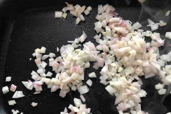 1、首先準備這道菜要用的全部食材,將洋蔥切成洋蔥碎,然後放入油鍋中煸炒一下。