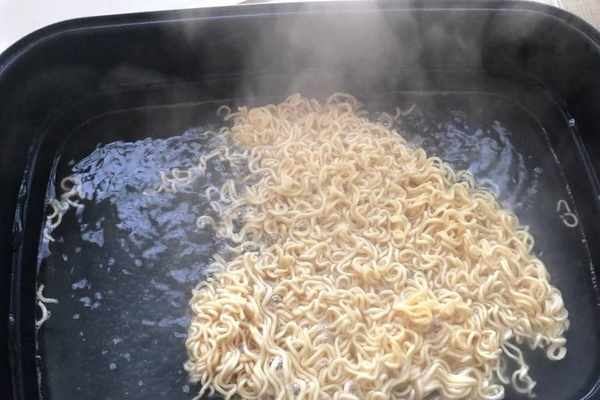 4、鍋中添加適量的水,燒開之後將方便面放入水中煮熟,煮熟之後撈出來控幹水分備用。
