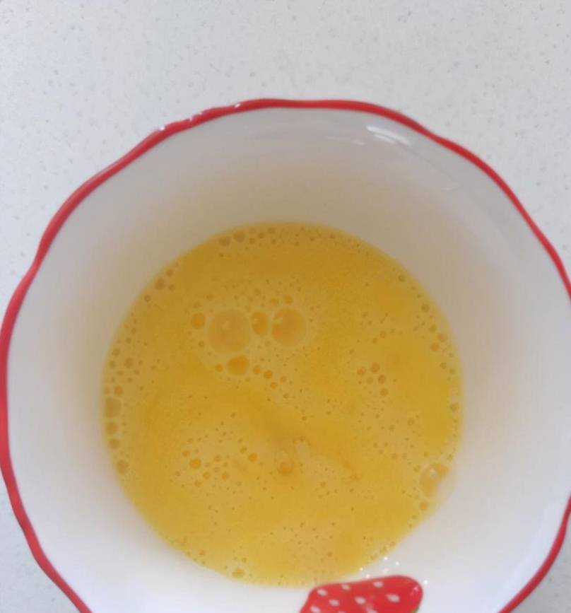 2、雞蛋打到小碗裡面,攪拌散瞭以後備用。想要炒出來的雞蛋滑嫩好吃的話,可以放進少量的清水還有少量的鹽。