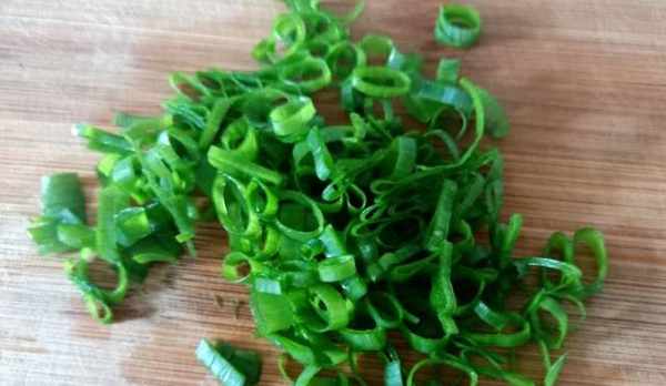 3、小蔥用清水沖洗幹凈,切成蔥花以後備用。建議大傢用蔥葉點綴就好瞭。