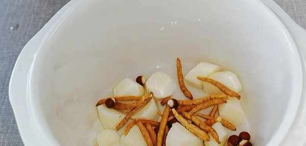 山藥最好選擇鐵棍山藥鐵棍山藥含有豐富的黏液蛋白,具有很高的藥用價值,山藥去皮之後把它切成小塊兒。山藥切好之後,把它放入燉盅裡,