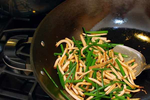 與所有炒菜一樣,重要的是要讓油非常熱,並以正確的順序和批次烹飪食材,以便您的炒鍋有時間在不同食材之間重新加熱。(在此處閱讀有關炒菜基礎知識的更多信息。)在這種情況下,這意味著從豆腐開始煎至微黃,然後加入一點醬油(很快被吸收),然後加入細香蔥,煮熟至幾乎沒有枯萎。蔬菜出來並放在一邊。