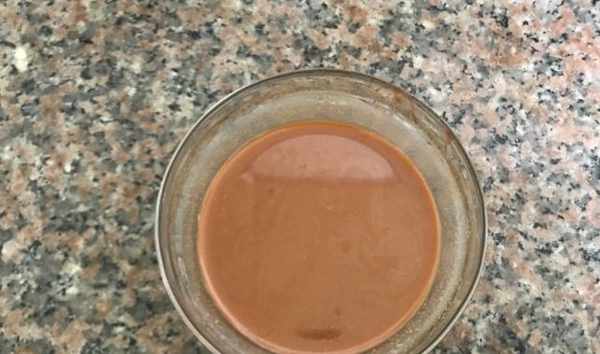 2、玫瑰腐乳還有腐乳汁都倒在一個小碗裡面,加入30毫升的清水,攪拌均勻。