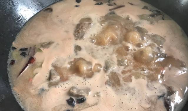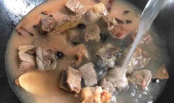 6、隨後再將牛肉湯也倒進去。