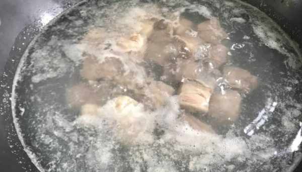 3、把牛肉買回來以後切成小方塊,把血水泡出去,用清水沖洗幹凈。鍋裡面加入適量的清水,冷水把牛肉下鍋,焯水大約3分鐘就可以瞭,撈出來以後將水分瀝幹(記得要用溫水來將牛肉身上的浮沫清洗掉),牛肉煮好的湯將浮沫撇去備用。
