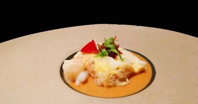 糯米粉100克、低筋面粉15克、蛋清30克、純凈水150克、鮮蝦仁20克、雞蛋1個、三肥七瘦肉末20克、鮑魚片20克、金針菇40克、食用花草、鹽3克、白胡椒粉2克、花生醬50克、沙茶醬8克、花生油50克、高湯20克、細砂糖10克