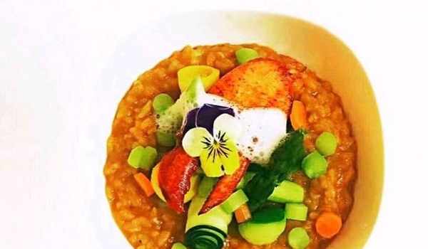 意大利米300克、蛤蜊、龍蝦、藏紅花、白洋蔥、奶酪碎、龍蝦湯、白葡萄酒、蘆筍、胡蘿卜、節瓜、黃油、橄欖油、鹽