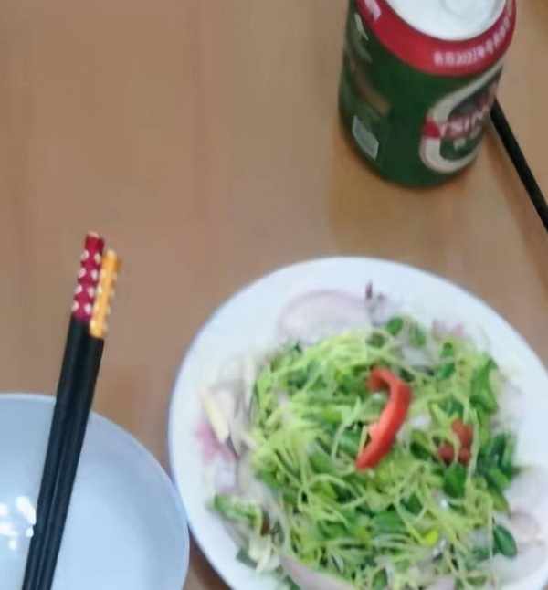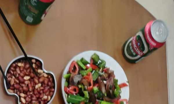 冰箱當中有一些臘肉所以就購買瞭辣椒,放在一起制作成瞭一道辣椒炒臘肉,因為本身臘肉當中就已經有咸味瞭,所以在制作的時候沒有添加特別多調料。而和辣椒一起炒也能夠讓臘肉更添加一絲辣的味道,吃起來是很開胃的。旁邊的炸花生米也是一道飯前的下酒菜,炸過以後外面是很香脆的,吃起來也很香濃。