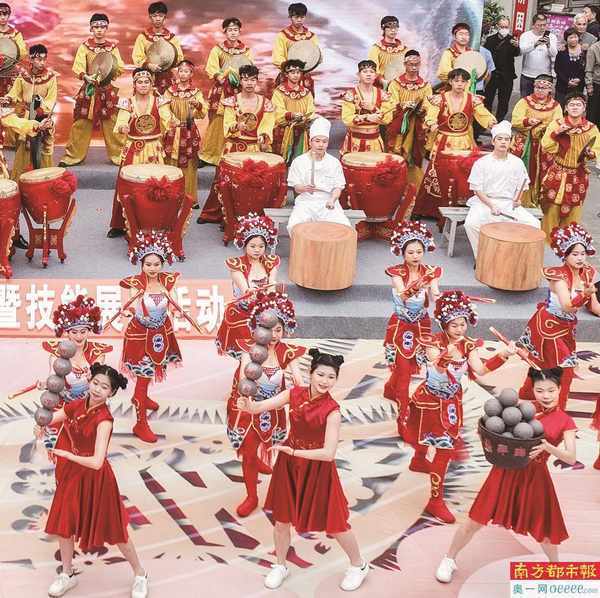 “潮汕牛肉”節在108名文化技工表演者帶來的英歌快閃節目中拉開序幕。 南都拍客 馬卡 攝
