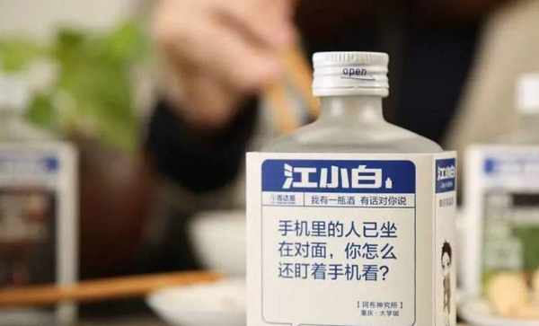 小瓶酒,口感清淡的清香型高粱酒,江小白企圖用產品取悅年輕人的味蕾,同時配合豐富的文案為年輕人營造喝白酒的氛圍感。