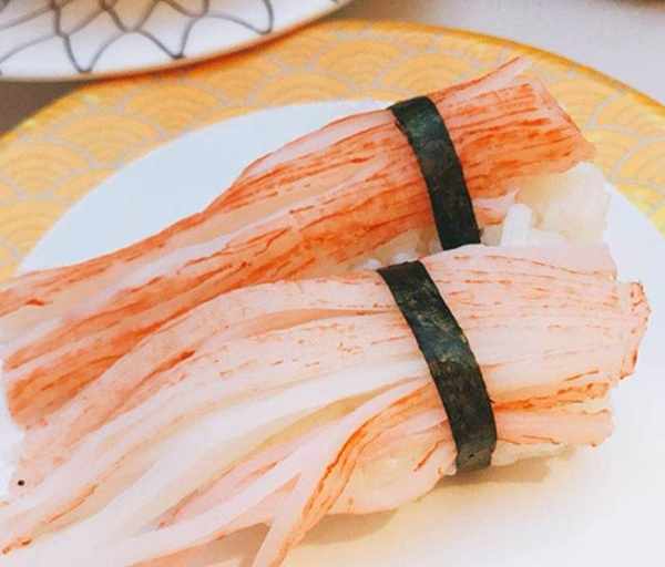 蟹肉壽司是由米、熟芝麻、新鮮蟹肉和紫菜組合而成的一道美食,將蟹肉切成簾絮狀蓋在揉好的香飯上,再用一條10毫米的紫菜條裹起來,既不影響蟹肉壽司的美觀,又能讓人一眼看出食品材料,更重要的是,軟嫩的蟹肉和香飯搭配在一起,想不美味都難啊!