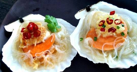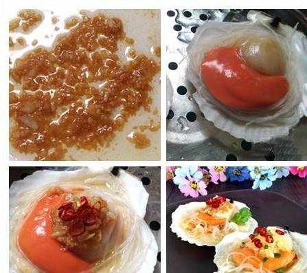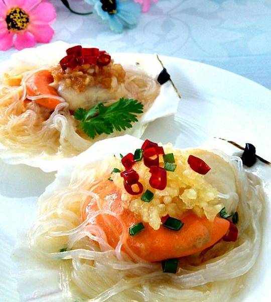 用料:扇貝幾個,植物油1勺,蒜幾瓣,蔥少許,雞粉半勺,蒸魚豉油半勺,粉絲10克。