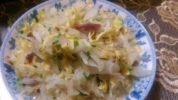 這道菜是拿一些現有的食材搭配來炒的,之前剩下的半截白蘿卜,搭配一些豆皮,少許的肉絲一起炒,雖然是胡亂搭配的,但是味道還不錯。